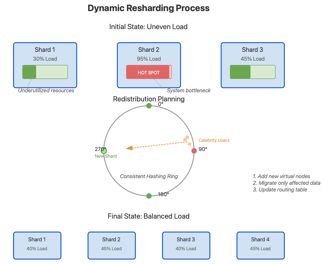 What happens when your system outgrows your initial sharding design? This is where many architectures fail—the resharding process.