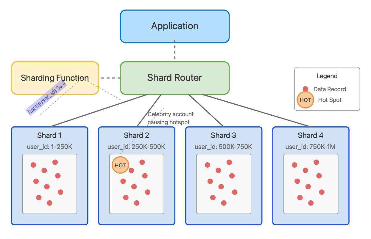 At a unicorn fintech startup, we once implemented range-based sharding for a transaction database, with each shard handling a specific ID range. The system performed beautifully in testing and early production.