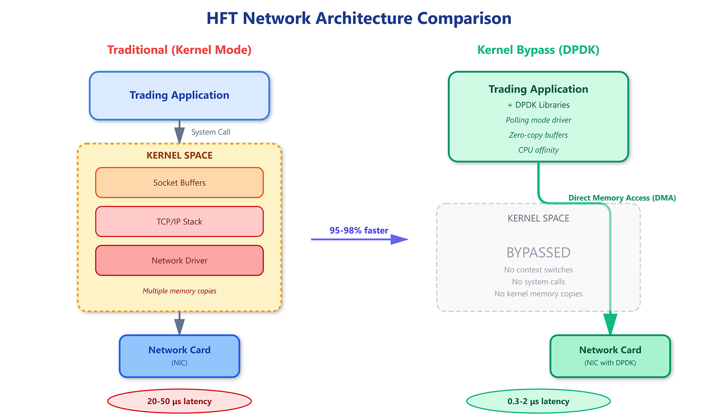 High-Frequency Trading Architecture: Kernel Bypass, DPDK, and Ultra-Low Latency