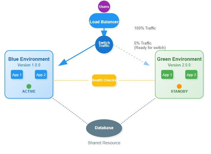 Unlike incremental strategies like canary deployments, Blue-Green is binary: your users see either the old version or the new version, never a mix. This simplicity becomes your superpower.