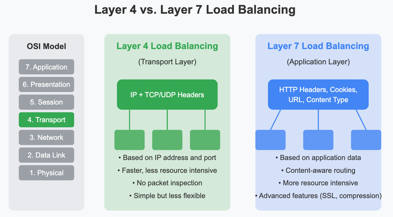Example: Distributing traffic based solely on TCP/UDP port numbers. All HTTP traffic (port 80) goes to web servers, while all database traffic (port 3306) goes to database servers.