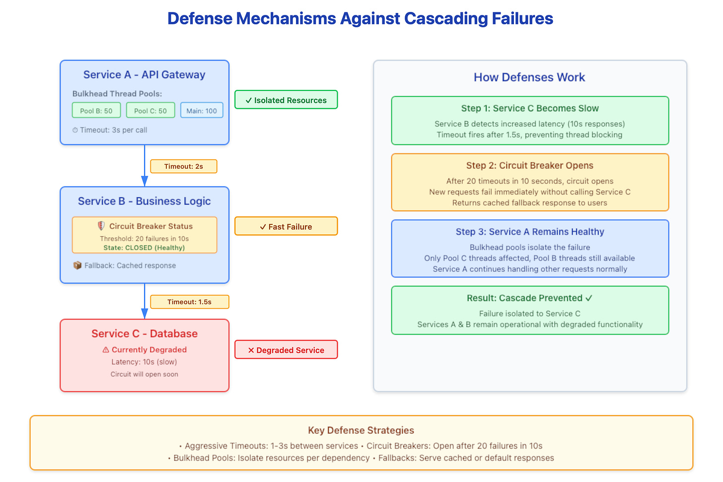 Cascading timeouts represent the “silent killer” of distributed systems because they exploit the gaps between services. Resilience is not achieved by hoping for high availability from every component, but by designing services that aggressively defend their own resources against the inevitable degradation of their neighbors.