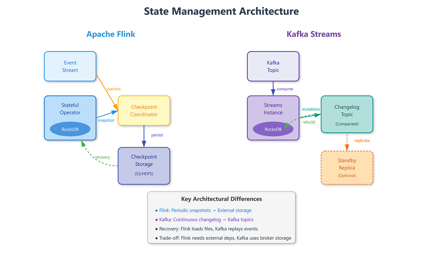 State Management in Stream Processing: How Apache Flink and Kafka Streams Handle State